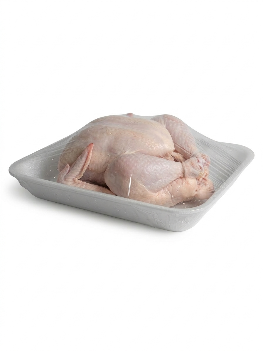 La bandeja blanca de EPS (pórex) ofrece una solución práctica y eficiente para la presentación y conservación de alimentos frescos como carnes, pescados y verduras.