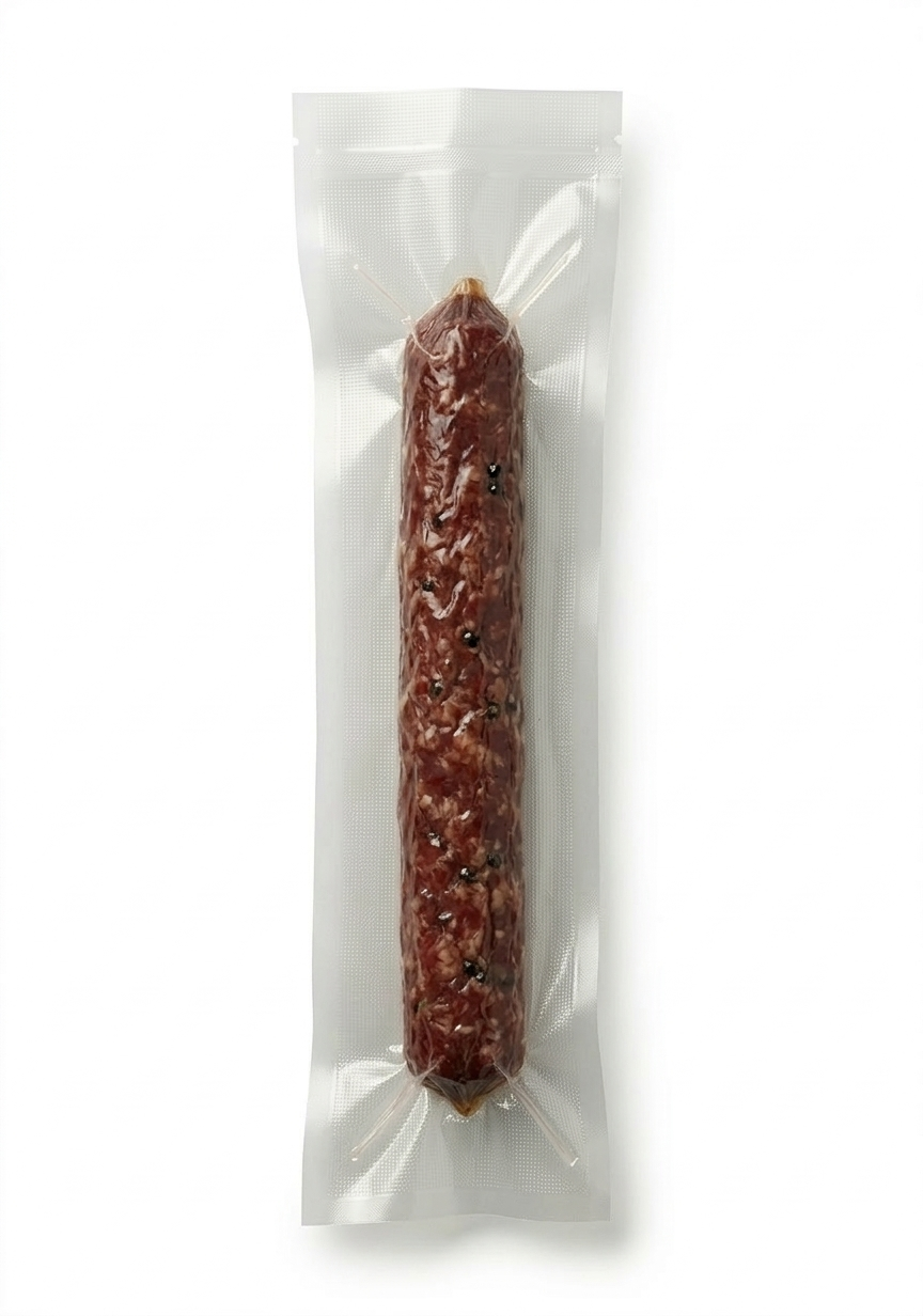 Fabricadas mediante coextrusión de poliamida (PA) y polietileno (PE), estas bolsas no son esterilizables ni aptas para cocción directa, pero admiten procesos de pasteurización (hasta 70 °C durante 2 horas) y congelación a temperaturas de hasta -25 °C.