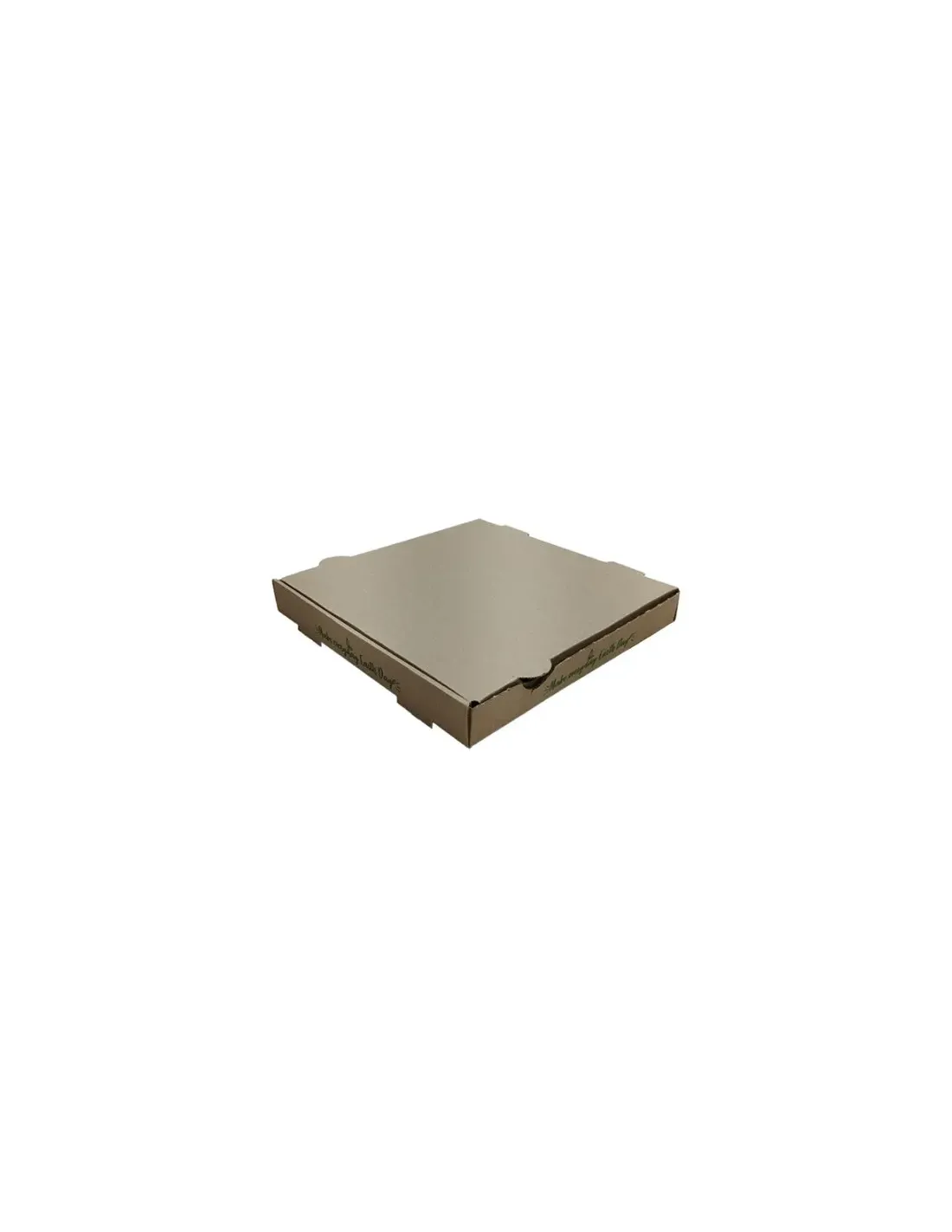 La caja de pizza 30x30+3,5 cm está diseñada para conservar la temperatura y frescura de la pizza durante el transporte. Fabricada en cartón alimentario microcanal (kraft natural o blanco), ofrece resistencia al calor, absorción de grasa y estructura ligera.