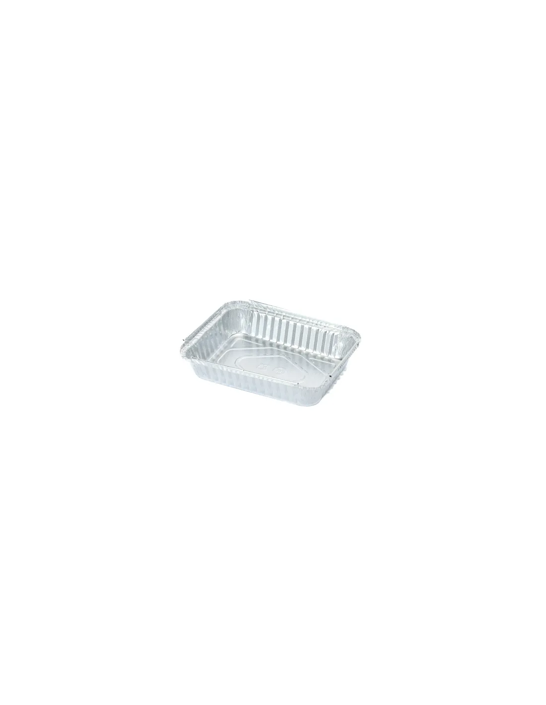 Este envase de aluminio rectangular cuenta con una capacidad de 640 cc y dimensiones exteriores de 19,5 × 14,4 × 3,2 cm, lo que lo hace ideal para porciones individuales, tapas o guarniciones en hostelería y delivery