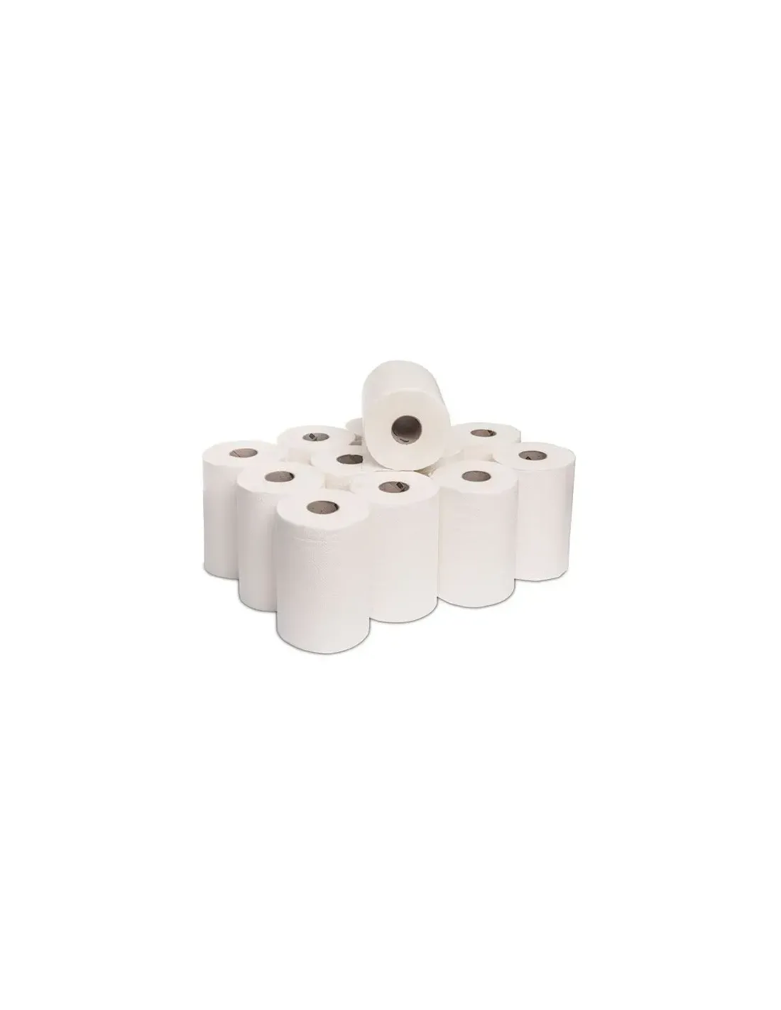 Este pack de 12 bobinas mini de secamanos ofrece una solución eficiente y funcional para espacios reducidos. Cada rollo, fabricado en celulosa 100 % virgen, cuenta con 75 m de longitud y un peso de 550 g, distribuidos en dos capas resistentes y un acabado laminado que evita desgarros en contacto con la humedad.