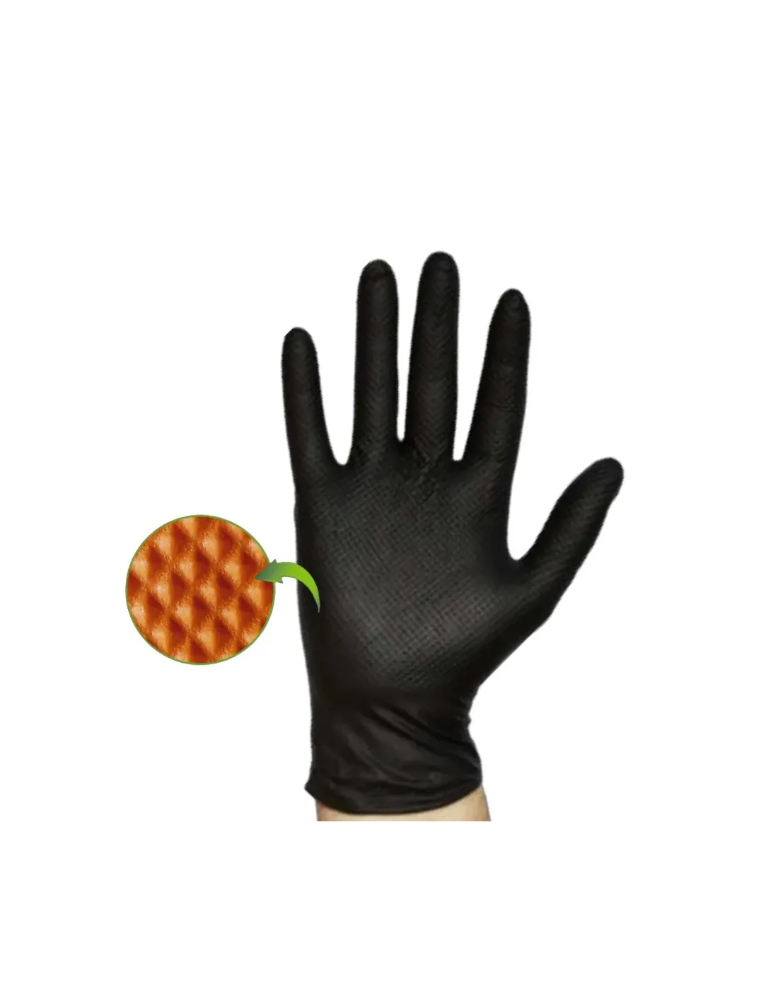 El guante G‑Touch GRIP Black de Rubberex es una solución de protección desechable diseñada para usuarios que requieren máxima durabilidad y agarre superior. Con un peso de 8,5 g, ofrece una estructura más gruesa que resiste mejor al desgaste diario en entornos húmedos, grasos o con solventes.