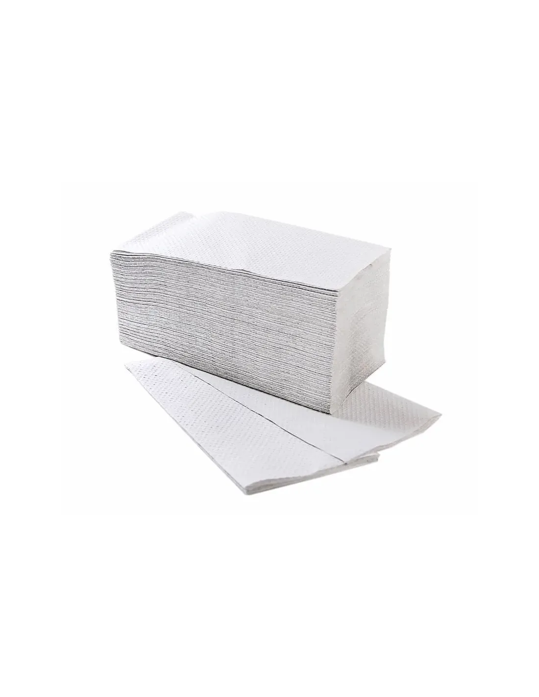 Toalla de papel secamanos plegada en Z, ecológica y sin plástico. Doble capa absorbente, de 23–22 cm. Dispensación individual para una higiene eficiente en baños profesionales.