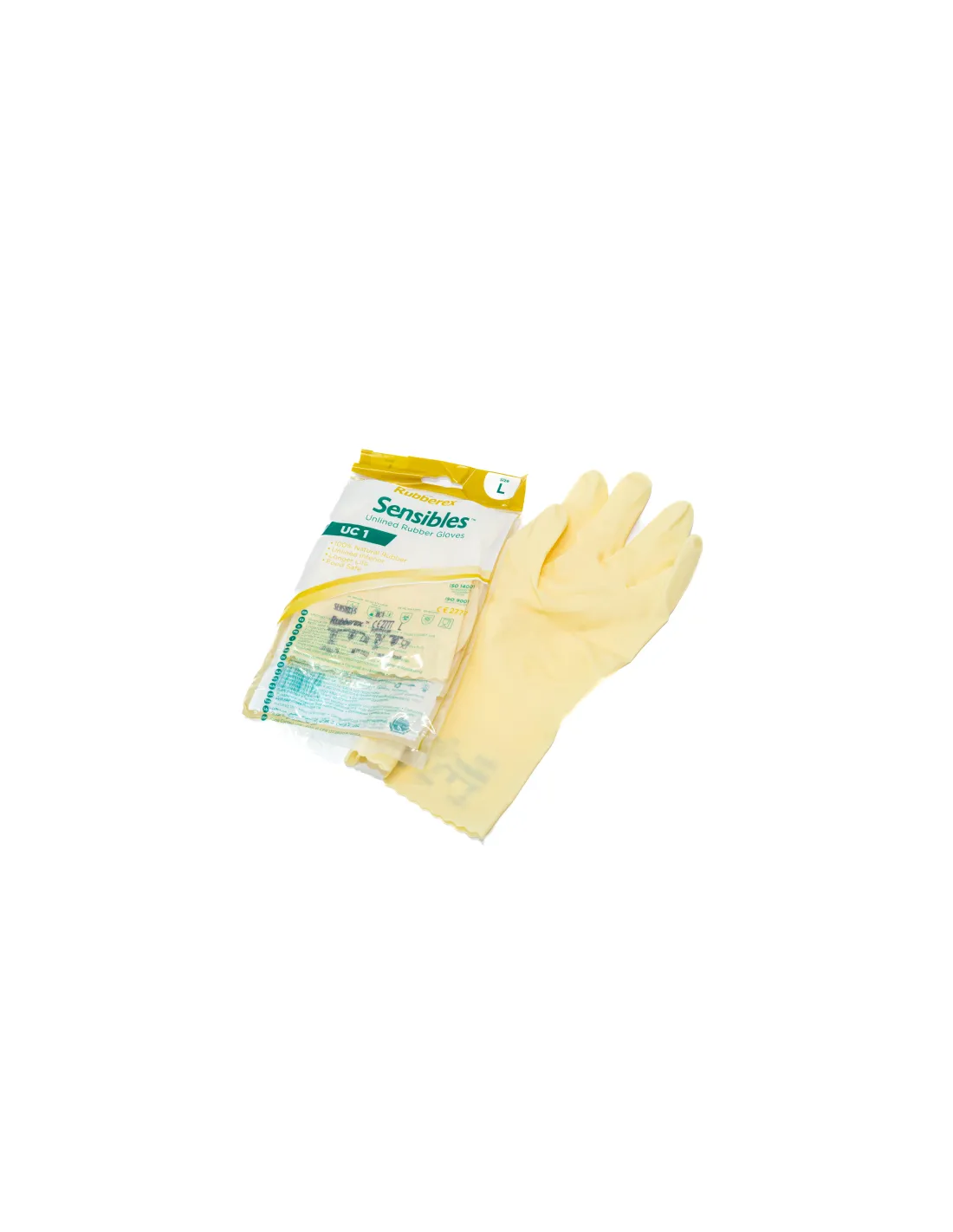 El guante UC1 de Rubberex es un guante reutilizable de látex natural, con interior satinado y superficie satinada, diseñado para un uso prolongado en entornos domésticos y profesionales.