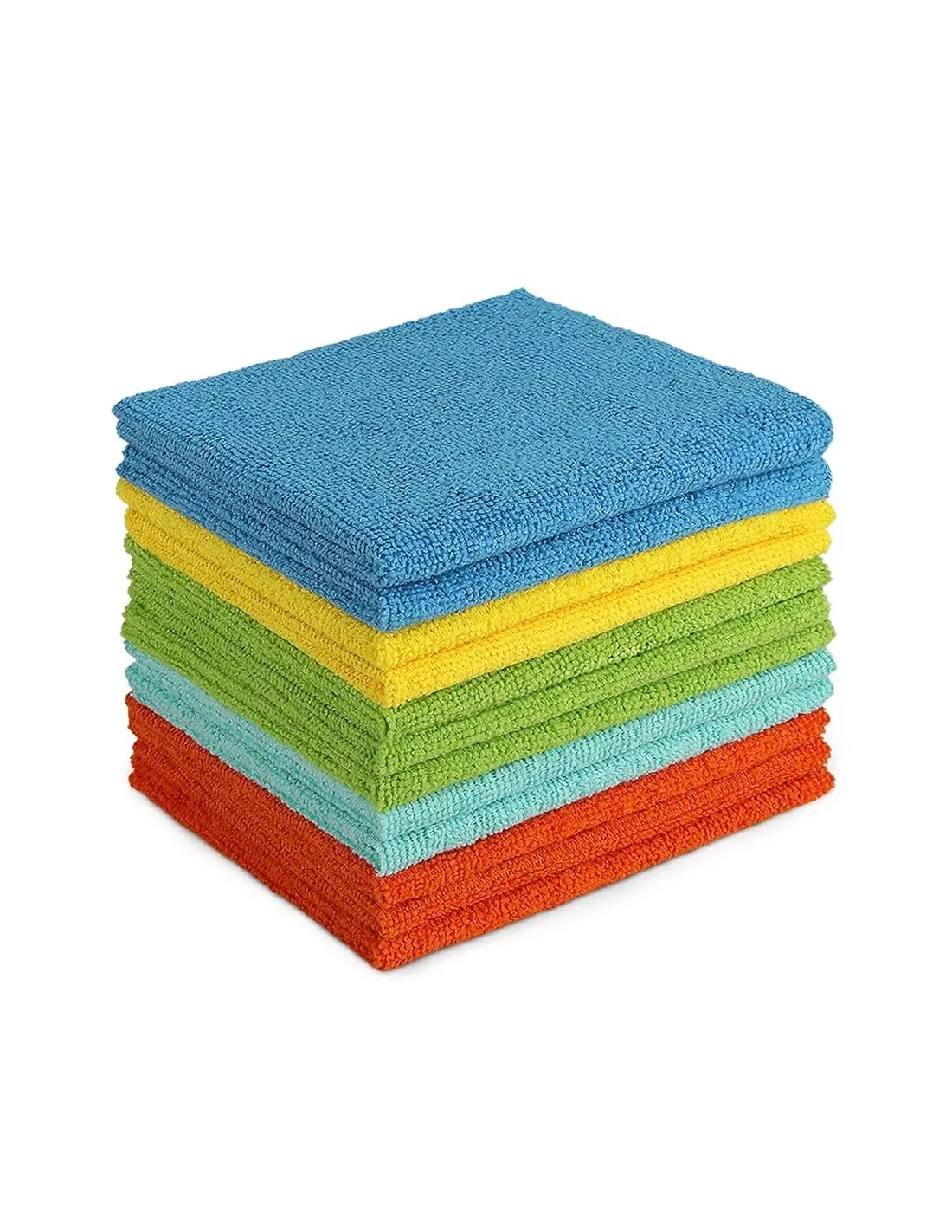 Pack de 5 bayetas multihogar de microfibra (40 × 30 cm), resistentes, absorbentes y reutilizables. Aptas para todo tipo de superficies: cocina, baño, muebles y cristales, sin pelusas ni necesidad de químicos.