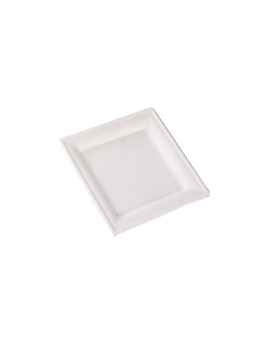 Estos platos cuadrados de fibra de caña de azúcar combinan sostenibilidad y funcionalidad, siendo 100 % biodegradables y compostables según la certificación OK Compost.